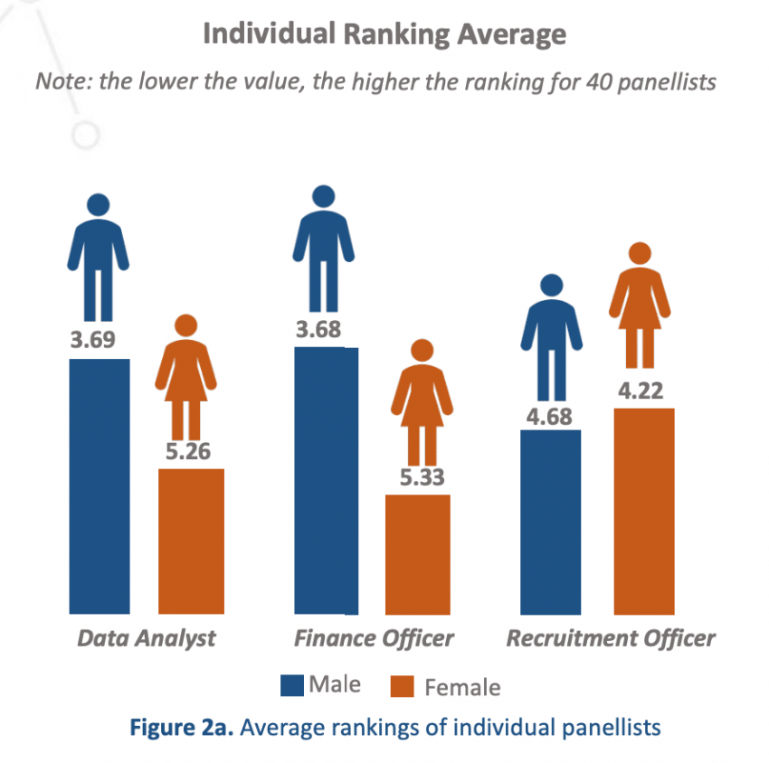 The panelists were then instructed to rank each candidate and collectively pick the top and bottom three resumés for each role. The researchers then reviewed their decisions.