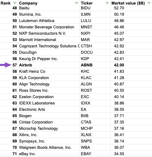 If that’s true, Airbnb would boast a market value of $42 billion — a little less than active wear darling Lululemon but $6 billion more than eBay.