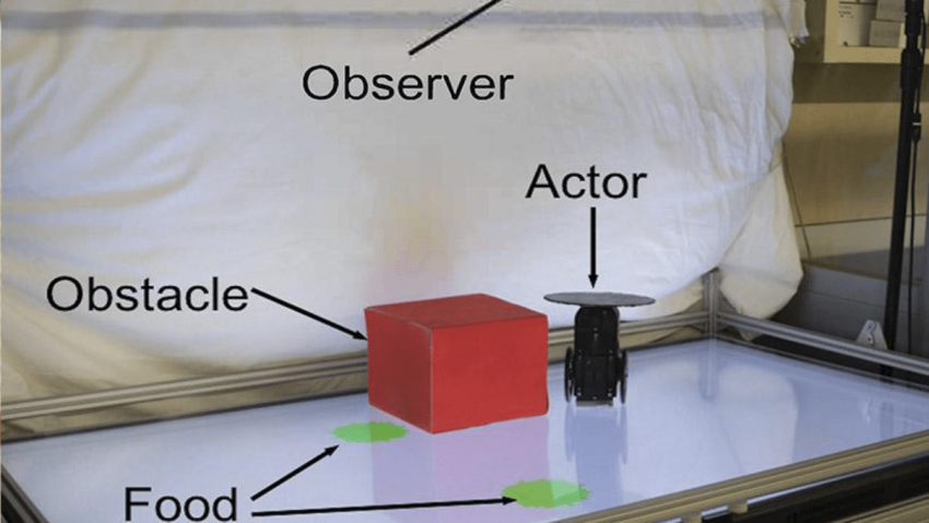 The researchers first programmed the partner robot to move towards green circles in a playpen of around 3×2 feet in size. It would sometimes move directly towards a green circle spotted by its cameras, but if the circles were hidden by an obstacle, it would either roll towards a different circle or not move at all.
