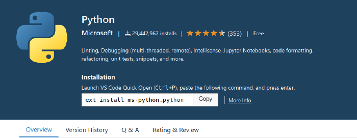 VS Code supports code highlighting for Python without this extension. However, if you will be working with Python, you should install this extension. It is developed by Microsoft itself, the same creator of VS Code. It’s so essential for Python developers’ productivity that VS Code will automatically suggest that you install it right after opening your first .py file.