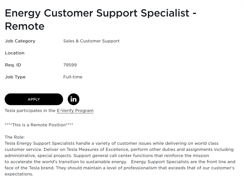As spotted by Jay Boller on Twitter, the original job posting required an “Energy Support Specialist” to address social media escalations directed at the CEO. In other words, they need someone to dive into Musk’s Twitter mentions to defuse tense situations, using critical thinking.
