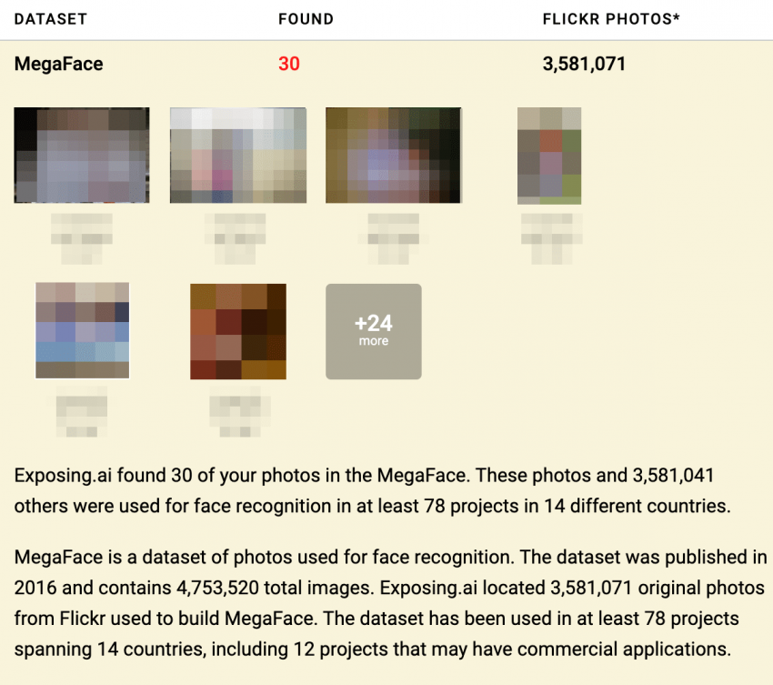 The search engine checks whether your photos were included in the datasets by referencing Flickr identifiers such as username and photo ID. It doesn’t use any facial recognition to detect the images.