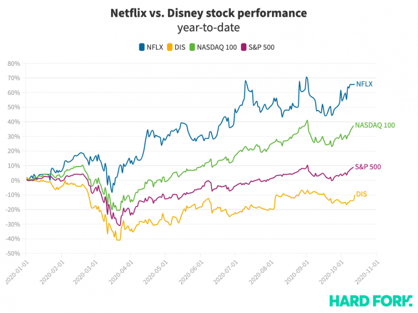 On the other hand, Disney’s new arch nemesis Netflix has seen its share price explode from $326 to $540, representing 65% growth. This has sent Netflix‘s market value beyond $238 billion — more than $84 billion added since the start of 2020.