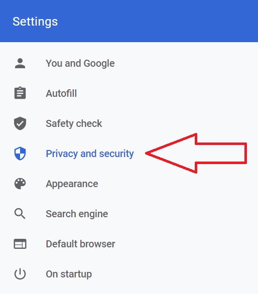 First — and this may sound obvious but indulge me — make sure your new camera and microphone are plugged in and set up. The settings are a little hard to find, as they might not be in the place you’d expect to find them. Go to your Chrome settings, and then find the “Privacy and Security” option on the left.