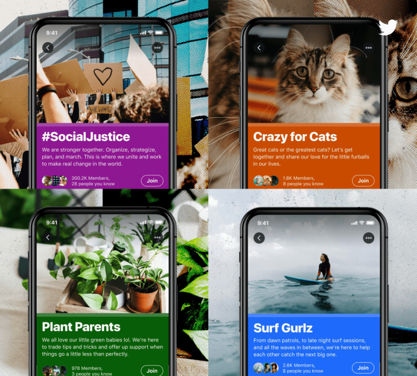 Per Twitter, Communites will make it “easier for people to form, discover, and participate in conversations that are more targeted to the relevant communities or geographies they’re interested in.” Twitter showed off some hypothetical groups around social justice, plants, cats, and surfing.