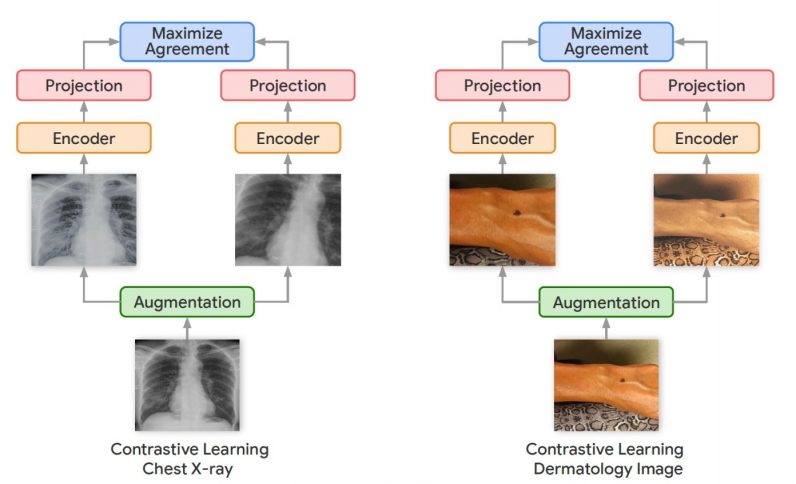 In their new work, the Google Research team used a variation of the SimCLR framework called Multi-Instance Contrastive Learning (MICLe), which learns stronger representations by using multiple images of the same condition. This is often the case in medical datasets, where there are multiple images of the same patient, though the images might not be annotated for supervised learning.