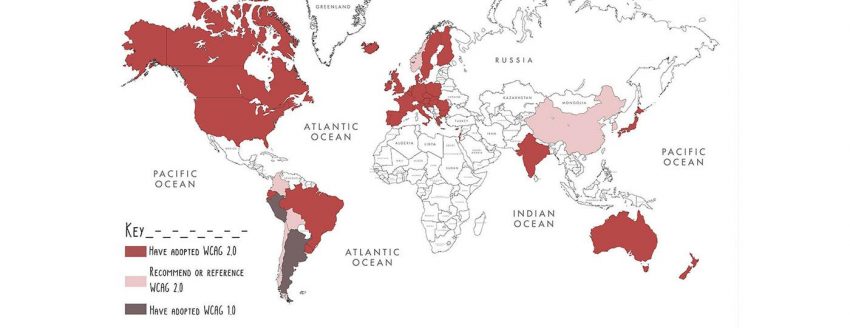 In December 2008, the Web Content Accessibility Guidelines (WCAG) was published, detailing a list of criteria for all public sector websites to meet. The guidelines have been revised several times and WCAG 2.2 is now scheduled to be published in 2021. As shown in this map, many major countries around the world have implemented WCAG standards: